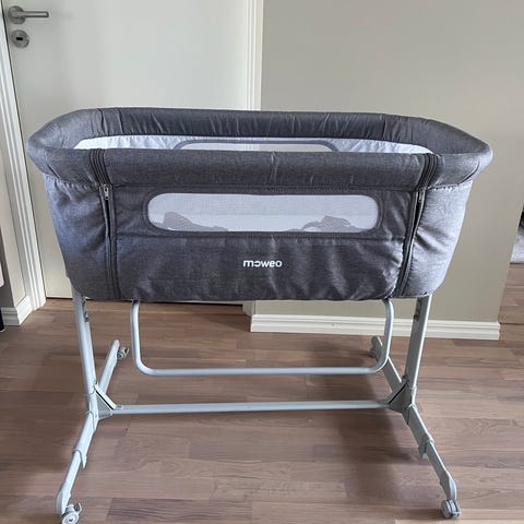 For sale Moby System Baby Crib Luna 3-in-1 in grey, a safe and practical sleeping solution for newborns.