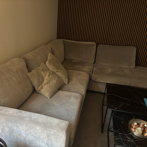 Soffa från Mio bra skick synligt använd på en sida sälj med mammor bord.