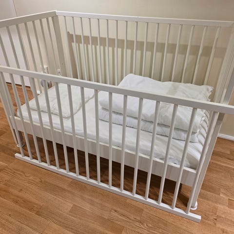 IKEA Gulliver spjälsäng med tillhörande madrass och madrassskydd