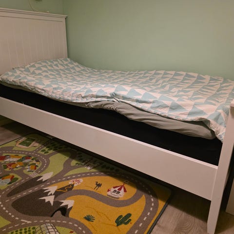 Jysk sängram i svart färg med måtten 90x200 cm. Sängramen är enkel i design och passar för en person. Materialet är stabilt och ger stöd för madrass och sovyta.