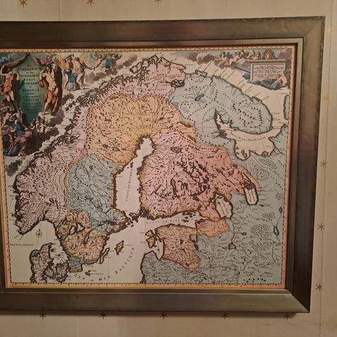 Detaljerad karta som visar geografiska platser och viktiga händelser från Bibeln, inklusive områden som Samaria, Galileen, Jerusalem och andra bibliska platser. Kartan innehåller illustrationer av bibliska scener och figurer, samt namn på städer och regioner. Användbar som referens för studier av Bibelns historia och geografi.