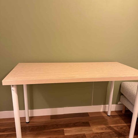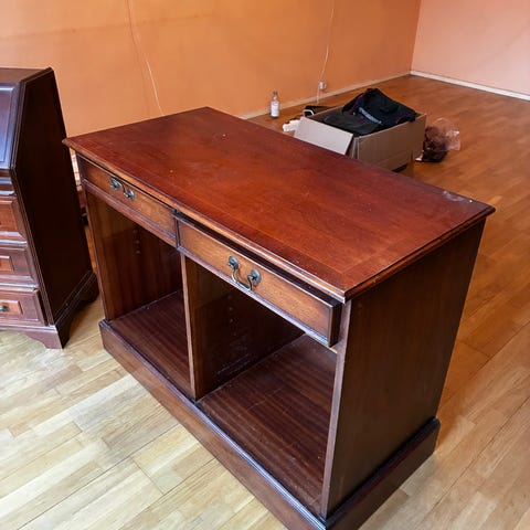 Rejält skrivbord med några mindre märken i mitten enl bild. 5 utdragbara lådor.