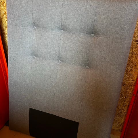 Mycket fin resårbotten och bäddmadrass IKEA. Sänggavel i beige tyg