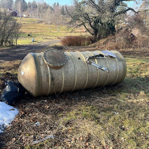 Sluten tank 3 m3 för avlopp. Inlopp 110 mm. Fast anslutning för tömning. Tillverkad av Myresjö Plastteknik i GAP (Glasfiberarmerad polyester).