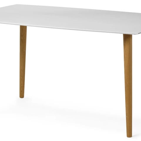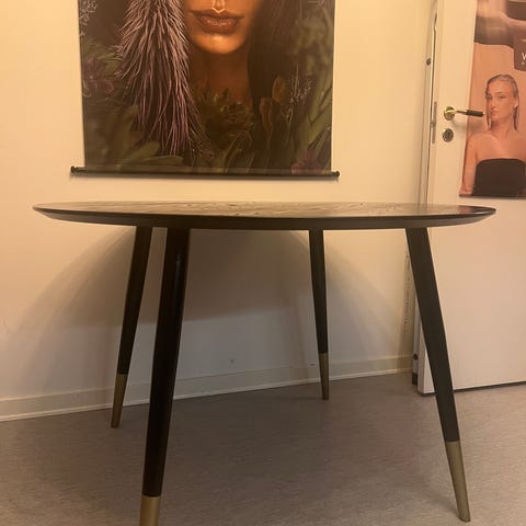 Matbord med skiva i svartbetsad askfaner och ben i svartlackerad gummiträ.