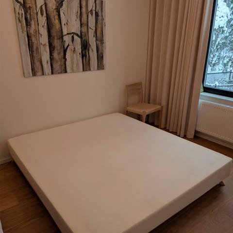 Bäddmadrassen har en gammal fläck på undersidan (behandlad). Madrasskydd har använts till största del.