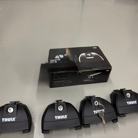 Säljer Thule Rapid System 753 lasthållarfötter (4-pack) med lås.