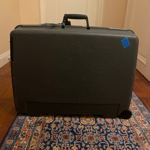 Samsonite kabinväska och en barnväska. Väskorna har hjul och handtag för enkel transport. Insidan är utrustad med fack och spännband för att hålla innehållet på plats under resan. Mått L: 54 B: 37 D: 20 och L: 49 B: 29 D: 20. Säljes för 100 kr styck.