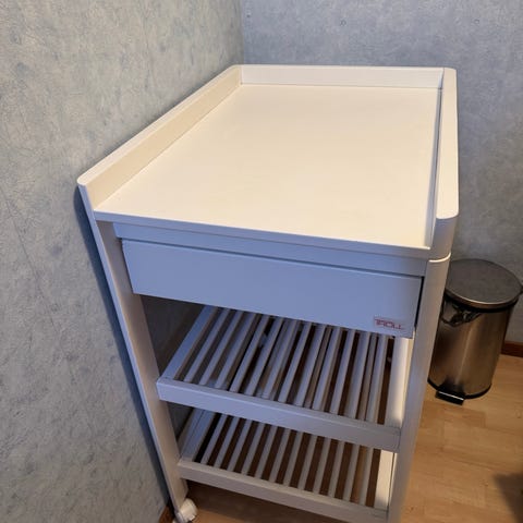 Skötbordet är fullt fungerande, väl använt och i bra skick.