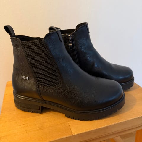 vinterskor i storlek 40, svarta. Skorna är designade för vinterbruk med isolerande material och slitstark sula för bättre grepp och skydd mot kyla och fukt.
