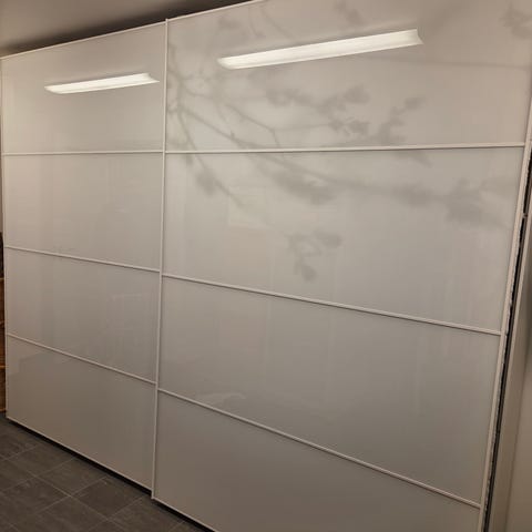 Pax 2 st 100 cm, flera hyllplan inuti. Högglansluckor. Kan säljas styckvis. 2.500kr st. Nypris 10.000kr för båda. Finns i Bromma.