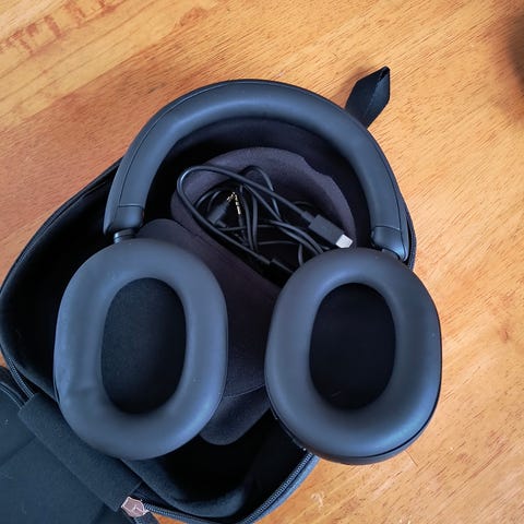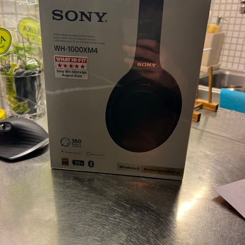 Sony WH-1000XM4 trådlösa hörlurar i svart färg. Hörlurarna är över örat-modell med aktiv brusreducering och trådlös anslutning för användning med olika enheter. Köptes för nypris 4500 för 6 mån sen.