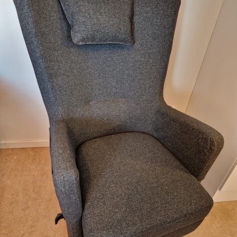 Trevlig bäddfåtölj med ett ryggstöd och ett sidostöd. Fåtöljen är inte mycket använd. Sittplymånen är delbar för att fungera som madrass till sängen som enkelt dras ut undertill. Plymånen delas med en dragkedja som ska kunna öppnas och stängas från två håll. Ena sidan på dragkedjan kärvar och därför kan madrassen stängas (så när som på en decimeter), men bara från ena hållet. Det syns inte eftersom den sidan är vänd mot ryggstödet.