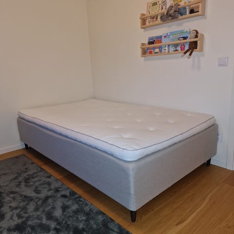 Bredd 80 cm, låg och mjuk. Fördelaktigen för barn max 10 år