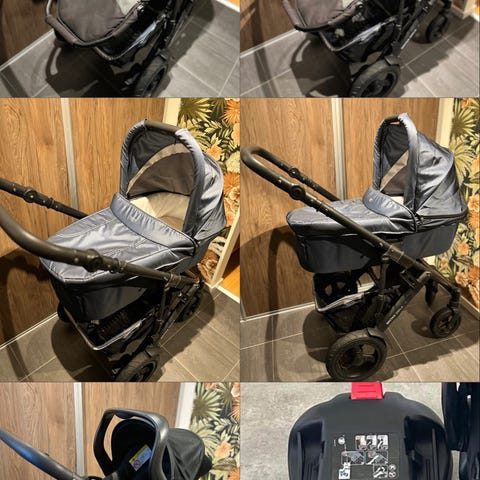 Britax Smile 2 med ligg- och sittdel, regnskydd, åkpåse och andra tillbehör. Finns vid Hammarbyrampen.