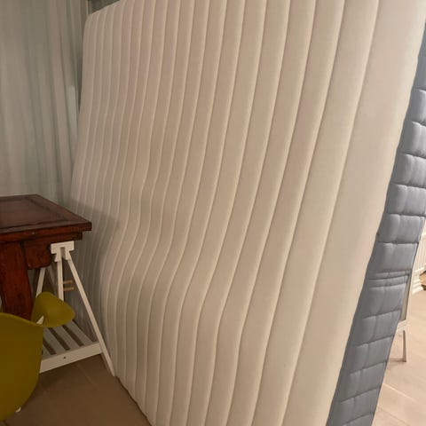 Hi, for sale in very good condition without any damages or scratches IKEA white colour Queen size bed with two separate mattresses 200 cm x 180 cm with extra top mattress.