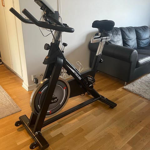 Väl använd, minst 20 år gammal med synlig rost. MEN den funkar utmärkt! Kör spinningpass framför Youtube på denna. Säljes pga av ombyggnad/ platsbrist.
