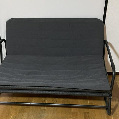 Mörkgrå melerad bäddsoffa. Sängen blir 115 cm bred i utfällt läge.