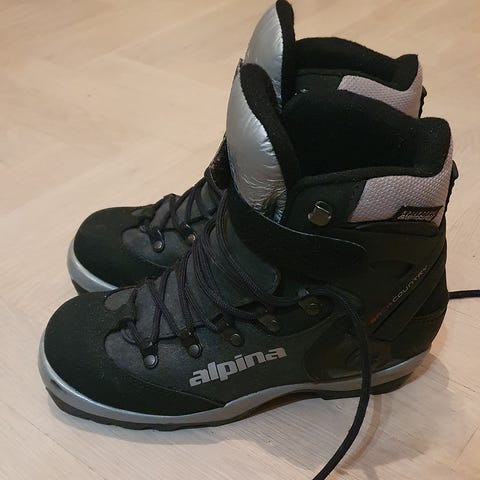Pjäxor, troligen st 39, i bra skick. Mått på innersula 25 cm. Märket Lundhags skywalk för tur/telemark/långfärdsskridskoåkning.
