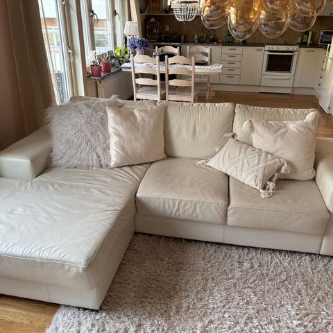 6-Seater White Sofa Leather