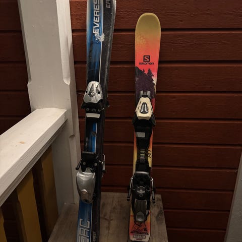 Skidor 90cm och pjäxor 18,5