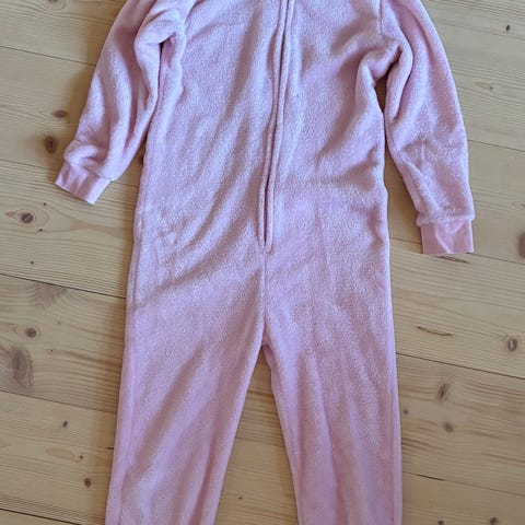 En helkroppsdräkt (onesie/one-piece/ onepiece) om föreställer en gorilla. Dräkten är svart med en grå mage och ett grått gorillahuvud med öron och hår.