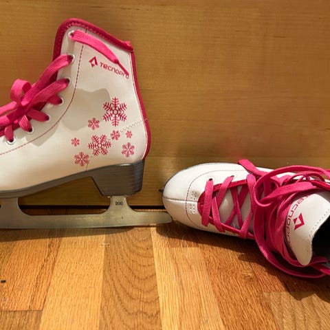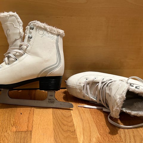 Gulliga Pernilla skridskor som är inte mycket använda men som är lite äldre.