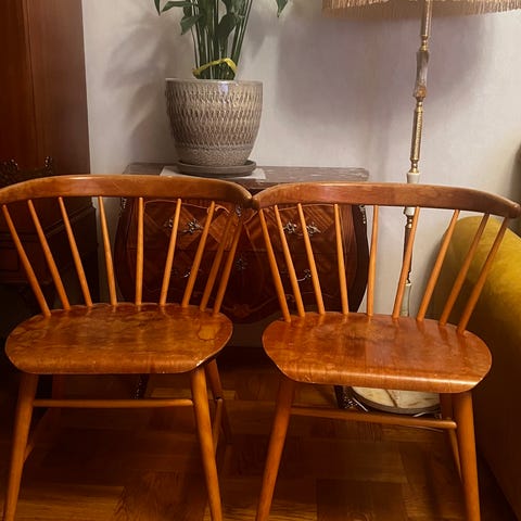 Tror det är stolen ”Florida” från Bröderna Wigells Stolfabrik, 1900-talets andra hälft.