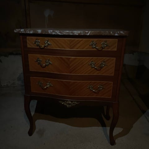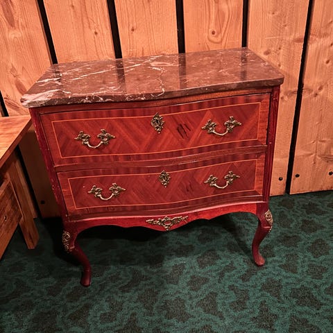 Antik byrå i gustaviansk stil med marmorskiva som är avtagbar.