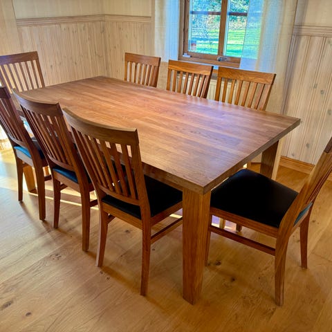 Ekbord med svarta stenplattor inkl iläggs skiva och 8 stolar