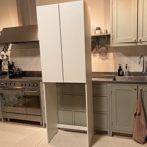 Tvättstuga med tvättmaskin, torktumlare och förvaringsskåp