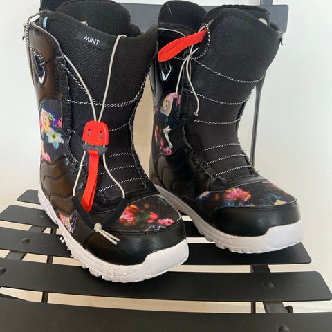 Burton Coco snowboardboots för dam i storlek 36.5. Bootsens färg är grå med vita och turkosa detaljer. Sparsamt använda under en säsong, mycket fint skick.