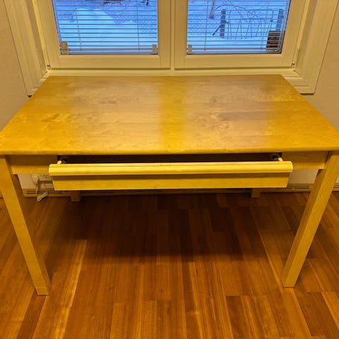 Skivan har synligt bruksslitage (se bilder), i övrigt stabil konstruktion. Perfekt för dig som vill använda direkt eller renovera/uppdatera själv.