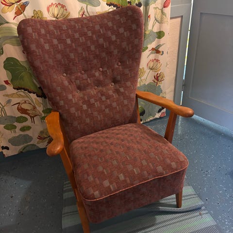 Fåtölj med fotpall. Läder. IKEA 90-tal