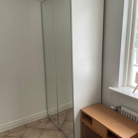 En spegeldörr Åheim (50cm) och lilla dörren vit (25cm).