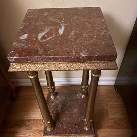 Antik piedestal med marmorskiva