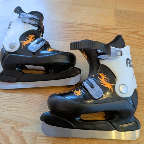 Skridskor Rookie svart/vit/orange storlek 31 med skydd.