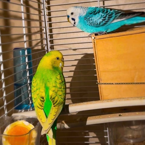 Det är dags att sälja mina två söta undulater pga jag har inte tid för dem. Den blåa är halvtam och den gröna är inte tam. Storlek på buren är: L 87 x B 46,5 x H 70 cm. Vill bara ha seriösa köpare som kan ta hand om dem.