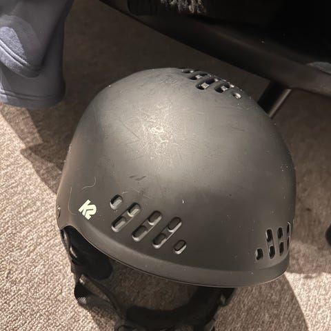 K2 Svart Hjälm, alpin, storlek small 51-55. Kan anses ha inbyggd mössa.
