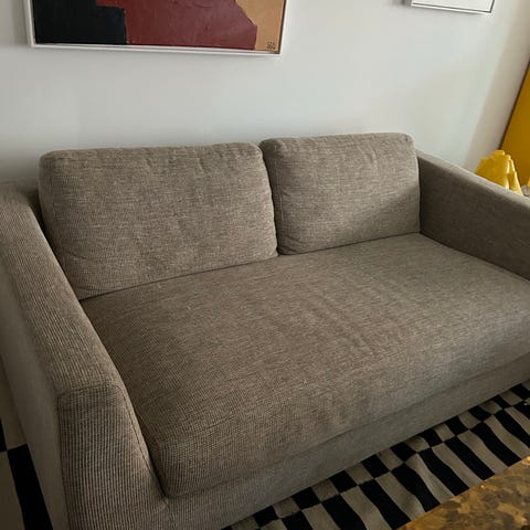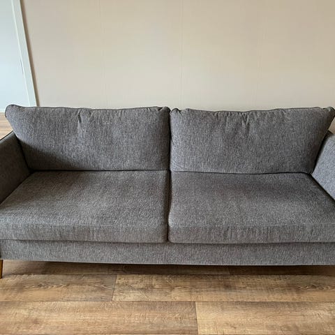 2,5-sits soffa. Mellangrå i tyg Chenille "ull", MIO kategori 3, bästa. Minimalt slitage. Bekväm och stilren, lätt att passa in. Bra och bekväm sitthöjd. Säljs p g a ommöblering. Rök och djurfritt hem. Nypris idag kring 10 000:-. Finns för avhämtning.