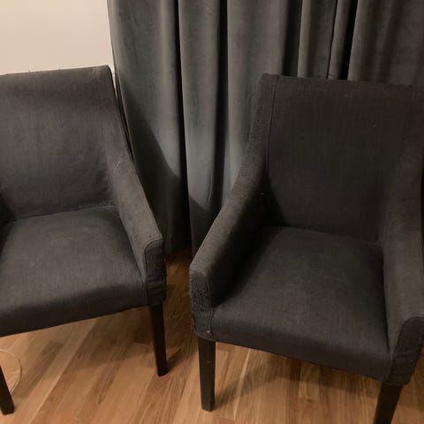 Mycket fläckar men väldigt skön att sitta i och kanske kan fortsätta användas med ett överdrag eller liknande.