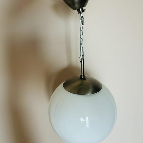 Unik taklampa från Ikea som ändrar form. Endast hängt i sonens rum. Hel och fin förutom ett like märke, möjligen går det att skrubba bort.