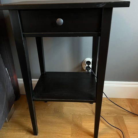 Säljer ett fint sängbord i bra skick, men som tyvärr fått två små mindre ”bubblor” på ovansidan (se bild) inget som syns i sin helhet.