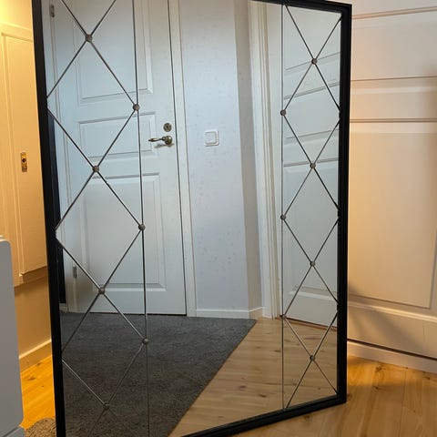 Spegel med 2 lådor som ska vara placerad på en byrå. Från serien äpplet.