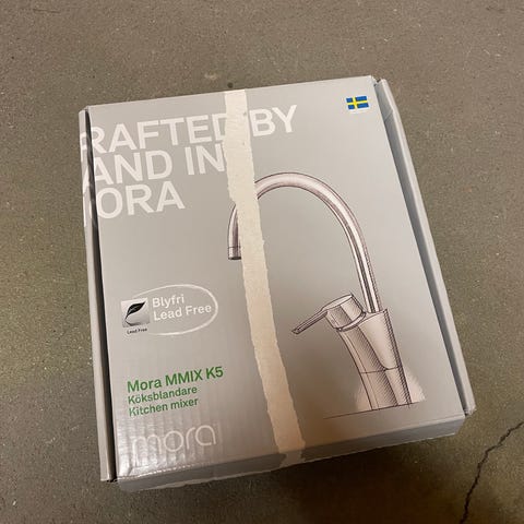 Mora köksblandare i krom. Endast monterad under kort tid men i princip inte använd. Inga repor eller slitage.