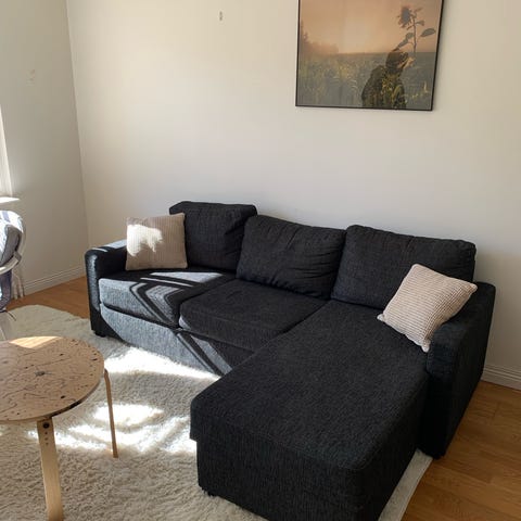 Jag säljer detta som ett paket och det som ingår är följande: soffa, soffbord, matta och tv bänk. Allt är i fint skick.