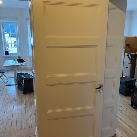 Innerdörr vit med mässingshandtag
