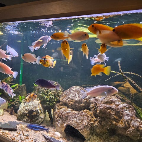 Då jag ska förändra i mitt akvarium säljer jag nu ett gäng mycket fina och välmående ciklider. Fiskarna är pigga, äter bra och har fantastiska färger som verkligen livar upp akvariet. Jag har valt att blanda klassiska Malawiciklider med mer färgintensiva arter som Turkana-juveler och Elioticiklider får man in en intensiv röd färg som gör hela akvariet mer levande och kontrastrikt.