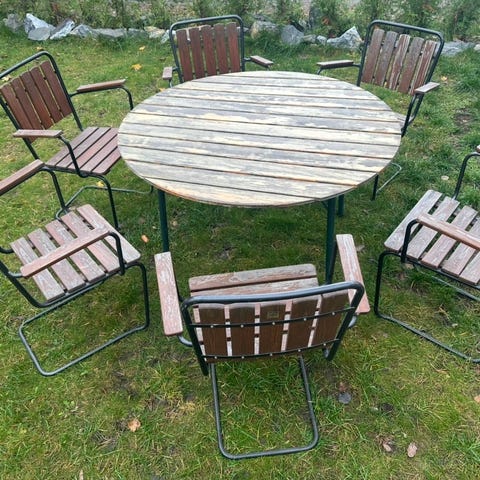 Utemöbelset bestående av ett rektangulärt bord och 8 st matchande stolar köpt på Länna möbler.