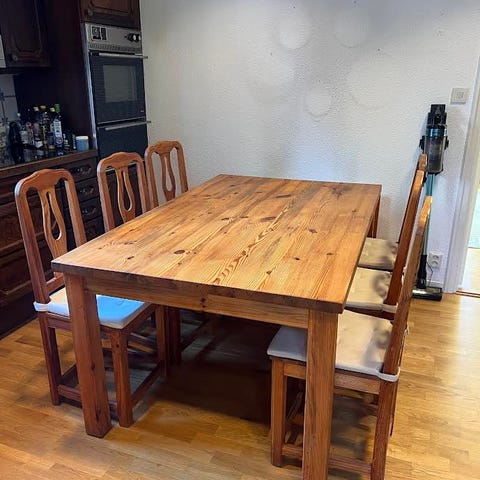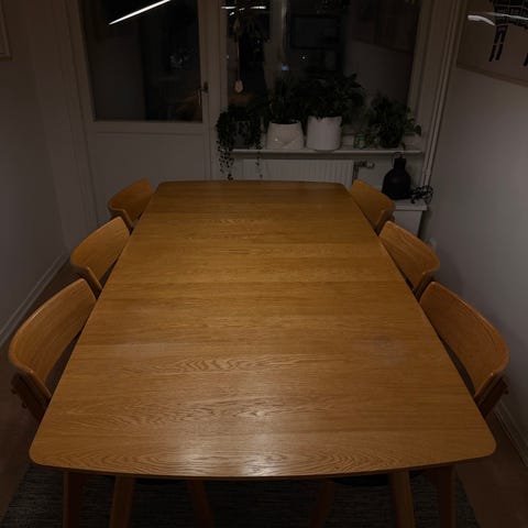 Matgrupp massiv ek och ekstolar med skinnsits